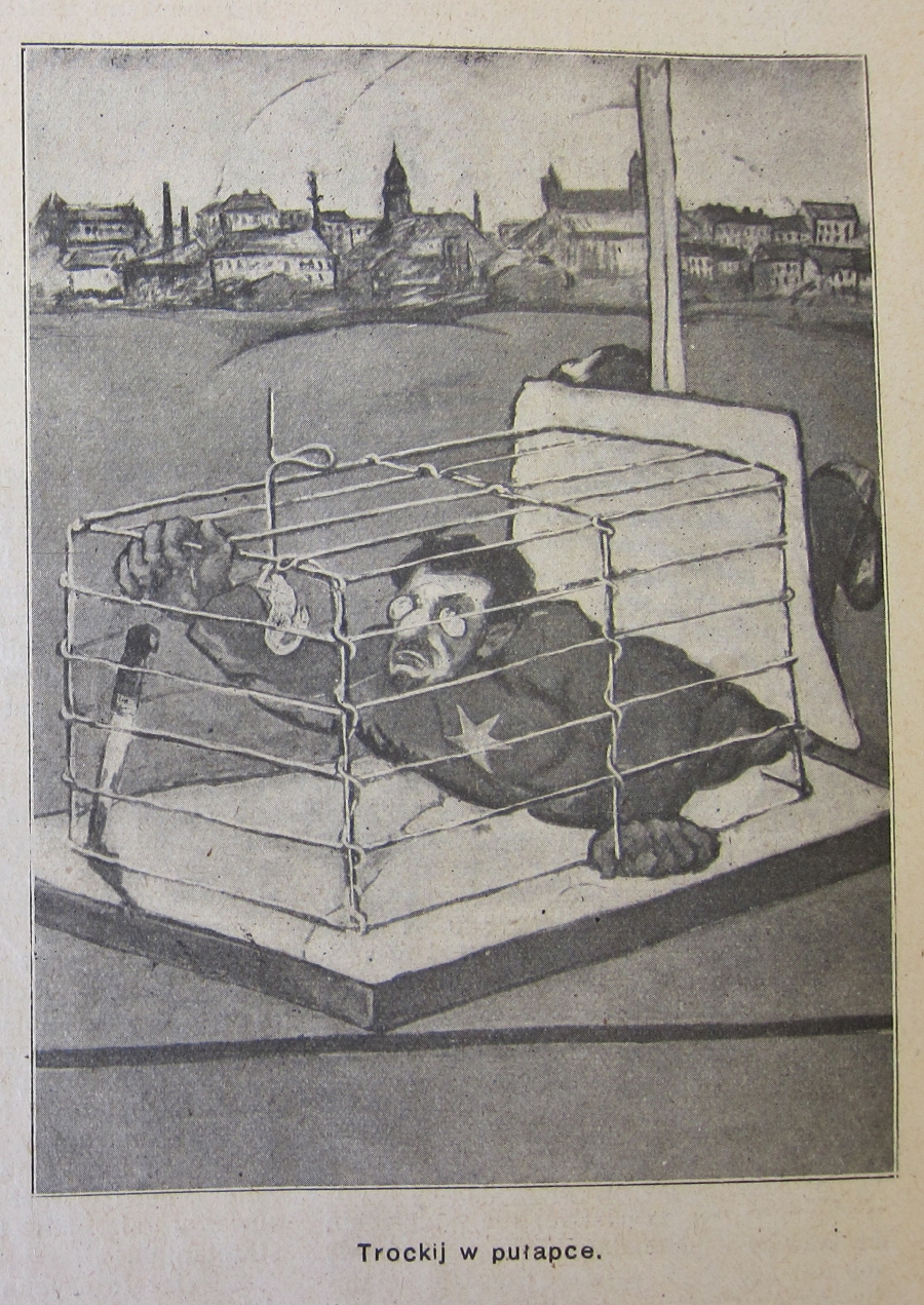 Abb. 11: "Trockij w pułapce" (Trockij in der Falle). Plakat; abgedruckt unter der Rubrik "Nasza propaganda arystyczna przeciw bolszewikom" (Unsere künstlerische Propaganda gegen die Bolschewiken), in: Świat, Nr. 38 vom 18. September 1920.
