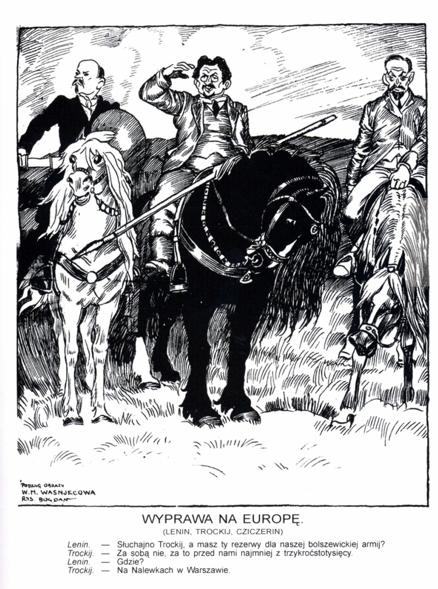 Abb. 12: "Wyprawa na Europę." (Feldzug nach Europa). Karikatur von Bogdan Nowakowski; Quelle: Mucha, Nr. 6, 1919.