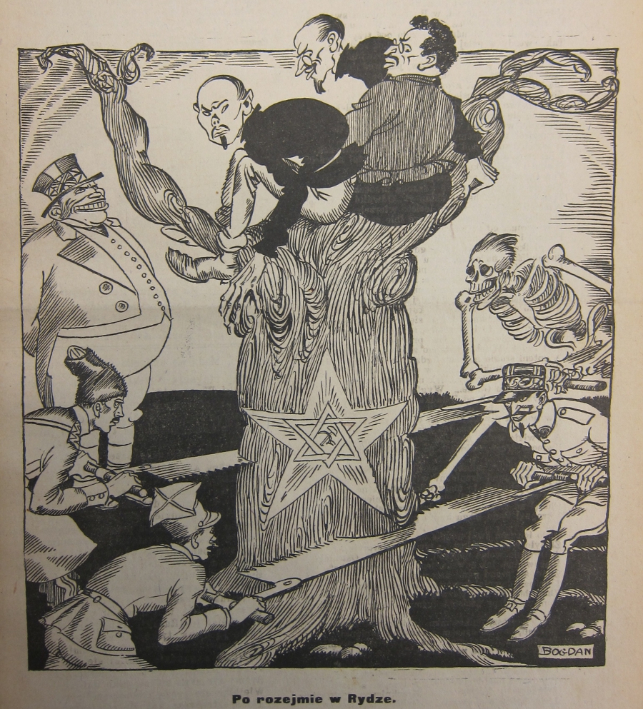 Abb. 9: "Po rozejmie w Rydze" (Nach dem Burgfrieden von Riga). Karikatur; Quelle: Mucha, Nr. 43 vom 22. Oktober 1920 (Fragment ohne Text).