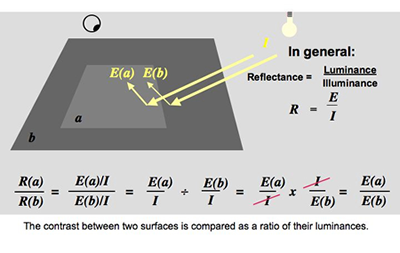 Figure 2a: From image to ratio: an example of using the Brightness Lab as a “stealth module” in elementary algebra class. Brightness perception is based on comparing the luminance values of two surfaces; the illuminant is not relevant.